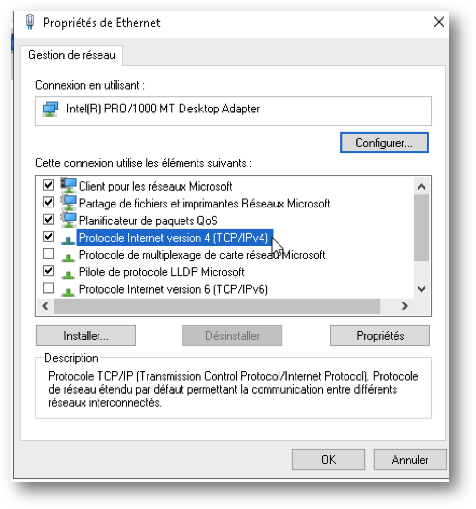 Désactiver le protocole IPV6 et double-cliquer sur Protocole IPV4