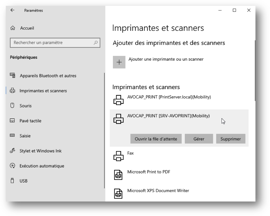 Pré-requis si le PC Mobility Print ne récupère pas la liste des imprimantes: